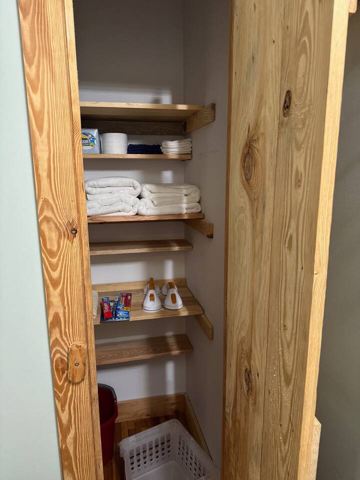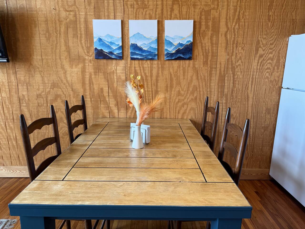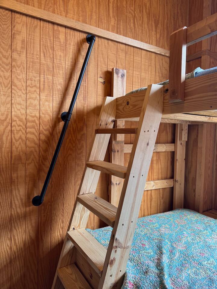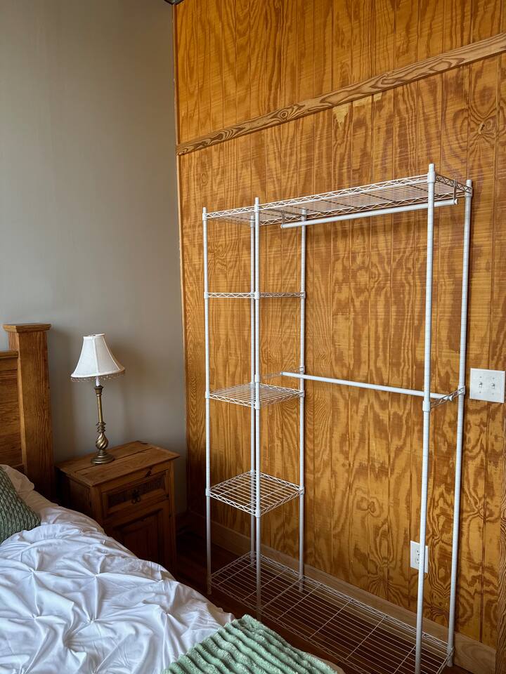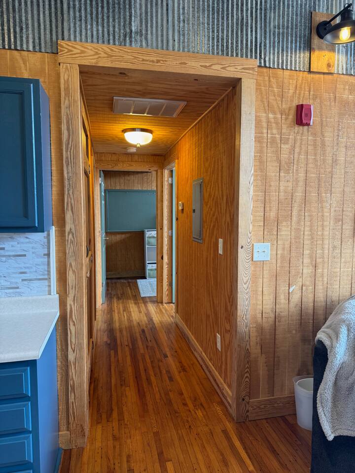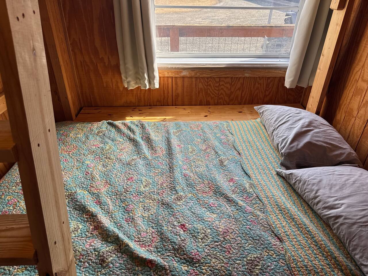 This unique place has a style all its own. This old schoolhouse meets rustic charm in this classroom turned living space. You will find creativity around every corner in this two- bedroom apartment. Rustic metal highlights the 12-ft ceilings. Each room has large windows that let in an abundance of natural light. The open concept living space is comfortable and spills over into a fully-equipped kitchen and dining area. The first bedroom has a king-sized bed and space for hanging your clothes. The second bedroom has a cabin-like feel with a bunk bed that has a double bed on the bottom and a twin bed on top. It is a built-in, very sturdy bed with comfortable mattresses suitable for kids or adults. The bathroom has a tub/shower, vanity, towels, and a selection of bath essentials. These apartments have everything you need to make your stay comfortable. There is a shared laundry facility should you need that during your visit.