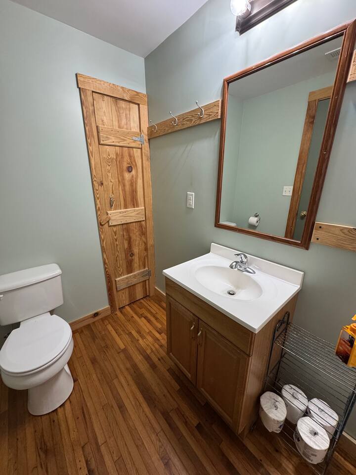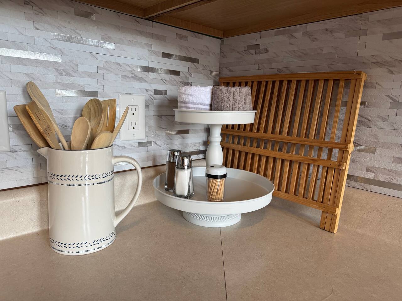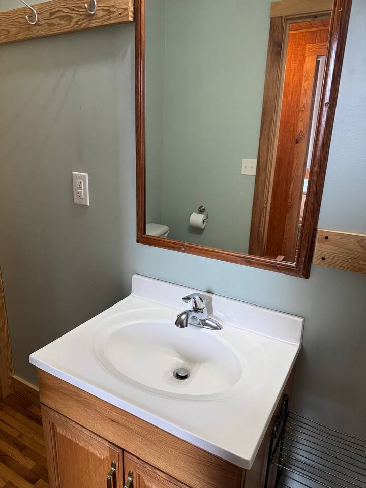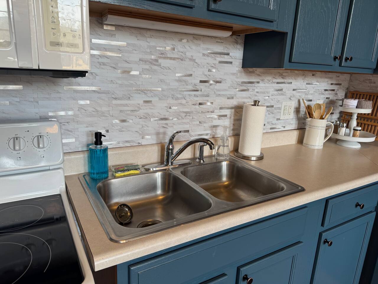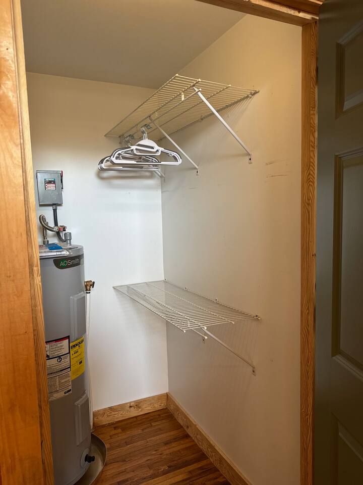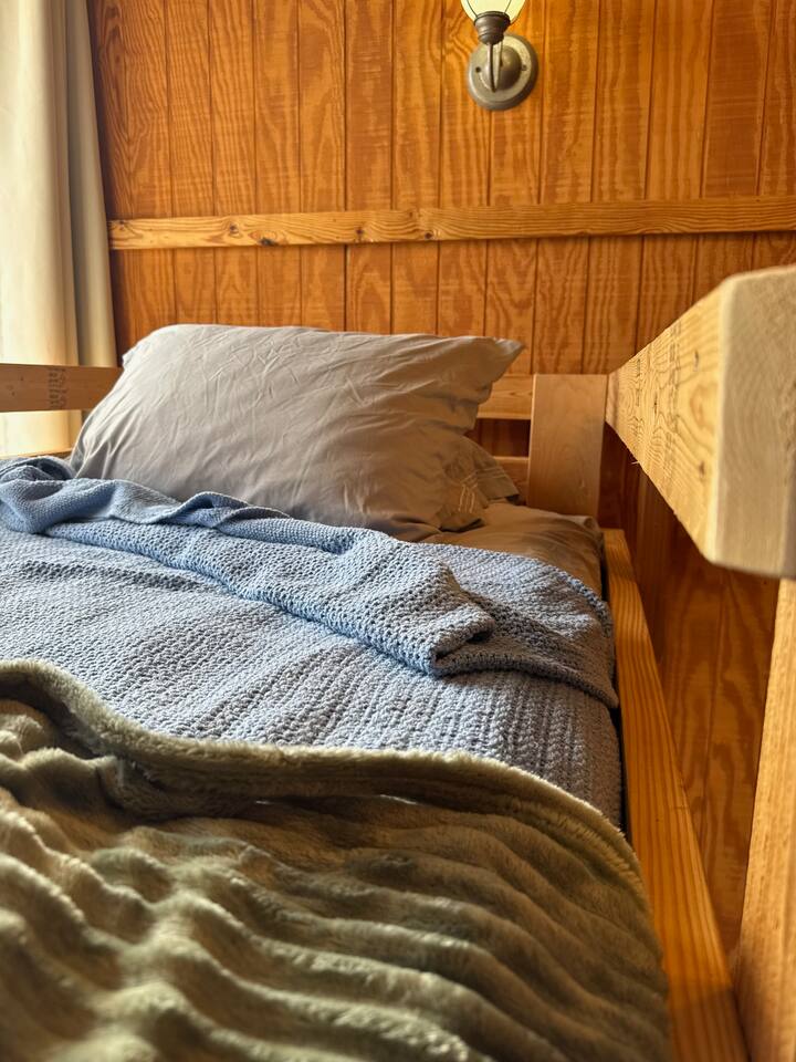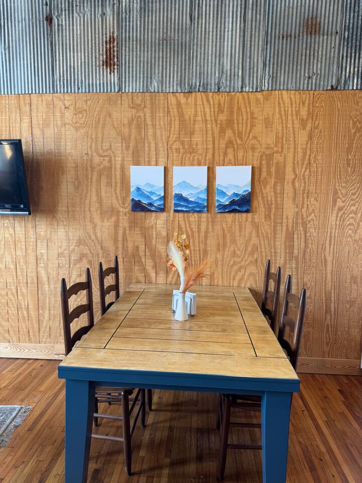 This unique place has a style all its own. This old schoolhouse meets rustic charm in this classroom turned living space. You will find creativity around every corner in this two- bedroom apartment. Rustic metal highlights the 12-ft ceilings. Each room has large windows that let in an abundance of natural light. The open concept living space is comfortable and spills over into a fully-equipped kitchen and dining area. The first bedroom has a king-sized bed and space for hanging your clothes. The second bedroom has a cabin-like feel with a bunk bed that has a double bed on the bottom and a twin bed on top. It is a built-in, very sturdy bed with comfortable mattresses suitable for kids or adults. The bathroom has a tub/shower, vanity, towels, and a selection of bath essentials. These apartments have everything you need to make your stay comfortable. There is a shared laundry facility should you need that during your visit.