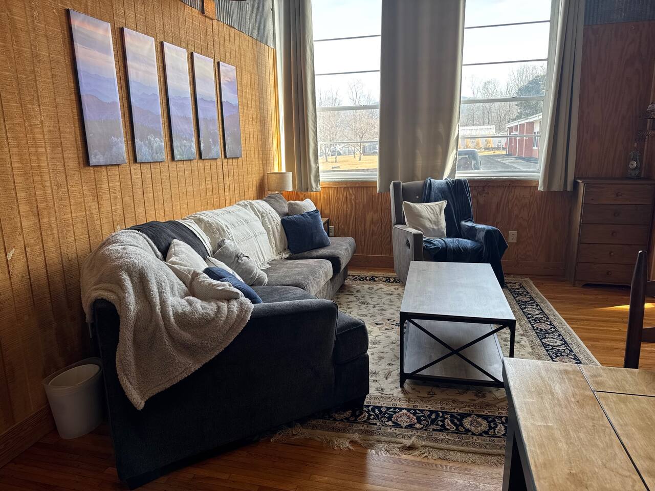 This property is a unique setting — it is a renovated school building originally built in 1924. It has a rich history in the North Cove community. Because it's an older building, it has certain "uniquenesses," like beautiful hardwood floors that tend to creak. There are large windows that let in tons of light, but because they are older, we have added extra window coverings for insulation. Our campus used to have a walking track, field, and playground, but Hurricane Helene took some of those amenities away. Our building weathered the storm well, but outside you may see ongoing work to prevent future damage. For instance, they have been replacing our previous bridge, and the Baxter Healthcare factory next door is building a levee along our creek to keep future floodwaters out. For those that love or dislike trains, there are a set of train tracks that run right near our property. We are located near many mountain attractions, such as Linville Falls, the Blue Ridge Parkway, the Linn Cove Viaduct, North Cove Disc Golf, Linville Falls winery, several Christmas tree farms, the Orchard at Altapass, and Grandfather Mountain. Many trails and views abound in this area. Up that direction are also several slopes for skiing or snow-tubing. We are about 45 minutes from Asheville. For those in the medical industry, we are about 20 minutes from both Mission Hospital McDowell in Marion and Blue Ridge Regional Hospital in Spruce Pine. If you have interest in a multi-month stay, please message us to inquire about availability.
