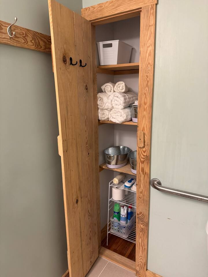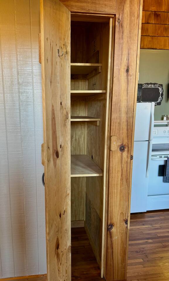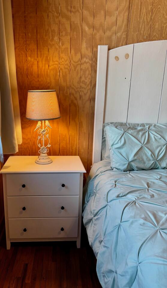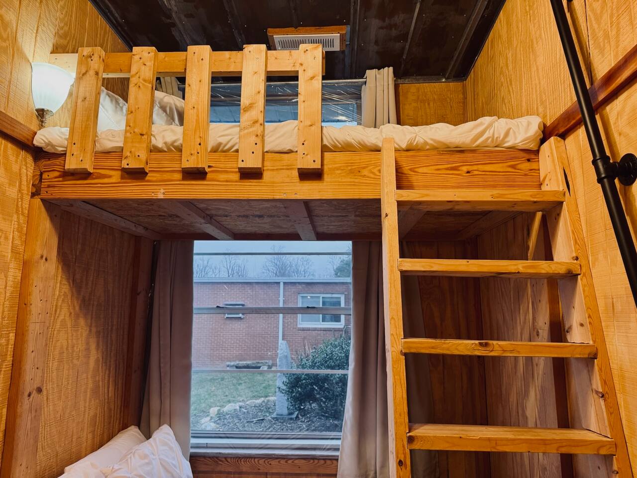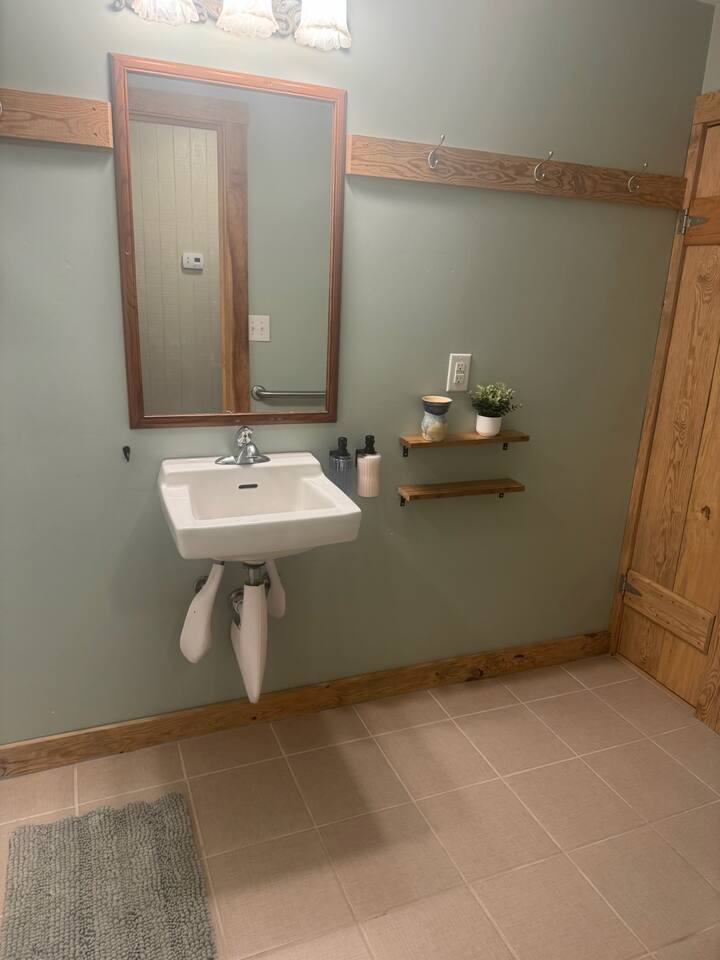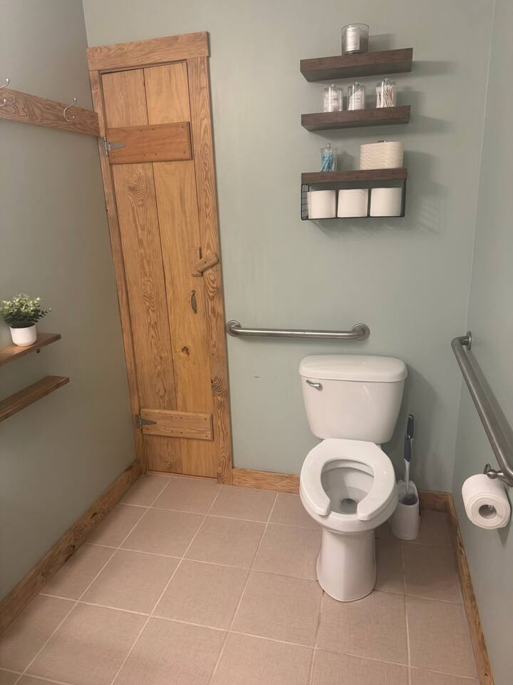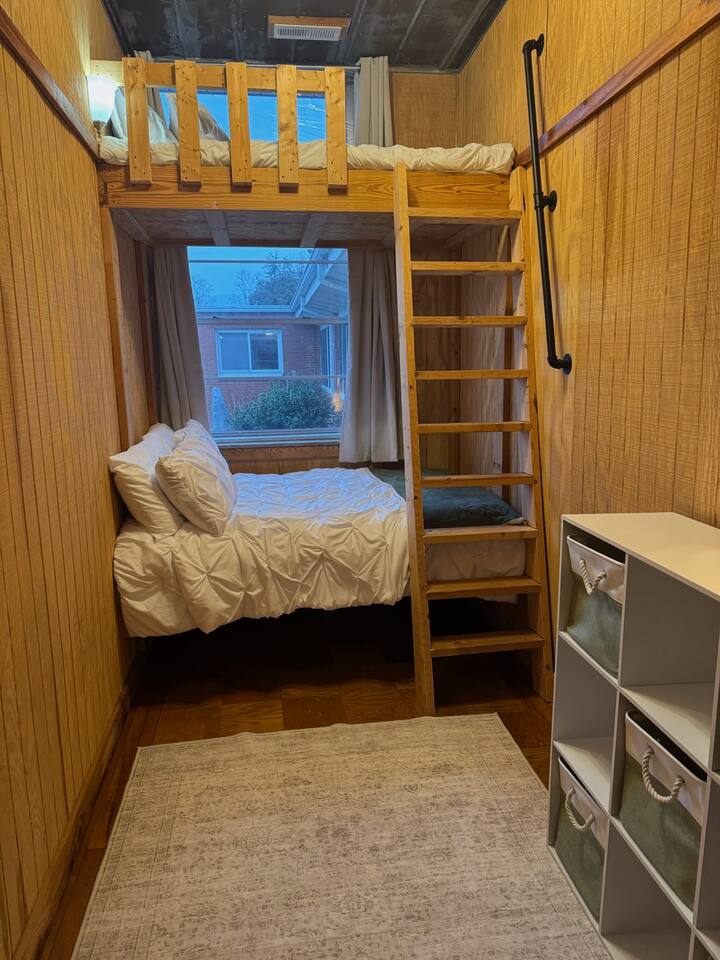 This unique place has a style all its own. This old schoolhouse meets rustic charm in this classroom turned living space. You will find creativity around every corner in this two- bedroom apartment. Rustic metal highlights the 12-ft ceilings. Each room has large windows that let in an abundance of natural light. The open concept living space is comfortable and spills over into a fully-equipped kitchen and dining area. The first bedroom has a queen-sized bed and space for hanging your clothes. The second bedroom has a cabin-like feel with a bunk bed that has a double bed on the bottom and a twin bed on top. It is a built-in, very sturdy bed with comfortable mattresses suitable for kids or adults. This apartment is ADA compliant for accessibility. The bathroom has a large stand-up / roll-in shower, vanity, towels, and a selection of bath essentials. These apartments have everything you need to make your stay comfortable. There is a shared laundry facility should you need that during your visit.
